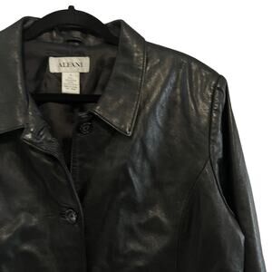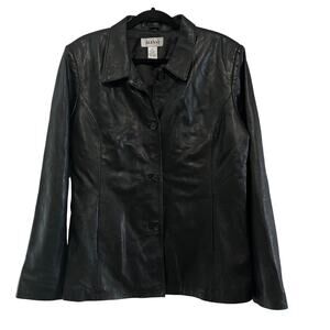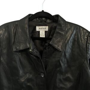 Vintage Alfani Women's Soft Black Leather Button Down Jacket XL