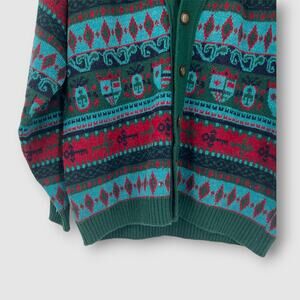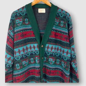 Vintage Alfonso Poso Sweater Studio Cardigan Knit Green Red Blue Pattern