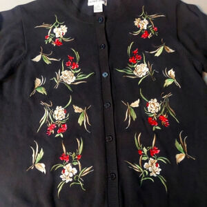 Vintage Alfred Dunner 1X Black cardigan floral embroidery Vintage Cottagecore