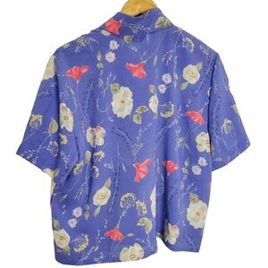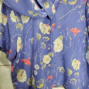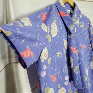 Vintage Alfred Dunner Blouse Womens 14 90s Purple Button Tie Floral Collar Retro