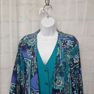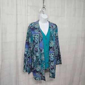 Vintage Alfred Dunner Blue Floral Layered Vest Blouse Boho Office 12