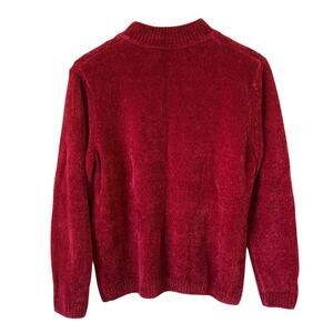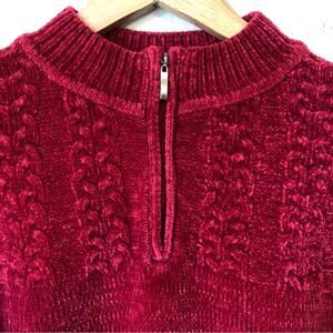 Alfred Dunner Cable knit Mock Turtleneck Super Soft Chenille Velvet Feel Chunky Grandma Sweater Deep Burgundy Oversized