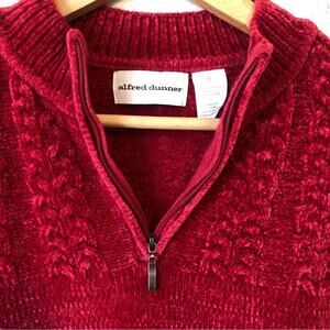 Vintage Alfred Dunner Cableknit Sweater Womens Small 1/4 Zip Grandma Burgundy