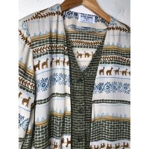 Vintage Alfred Dunner Camel Print Button-Front Top Earthy Tribal Boho Size: 8