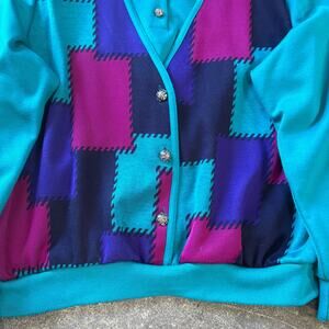 Vintage Alfred Dunner Cardigan Sweater Womens L Green Blue Button Up Cottage