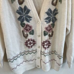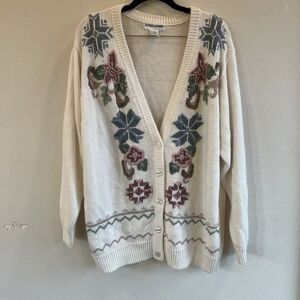 Vintage Alfred Dunner Cardigan Sweater XL Floral Embroidered Cottagecore V Neck