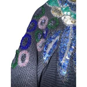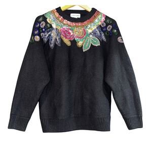 Vintage Alfred Dunner Floral Sequin Sweater Women Med Oversized Slouchy ~flaw