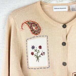 Vintage Alfred Dunner Grannycore Embroidered Beaded Button Down Cardigan Cream S