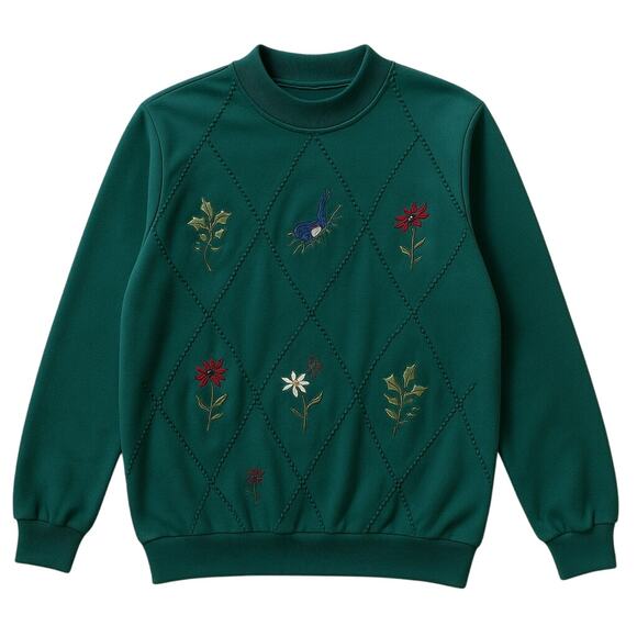 Vintage Alfred Dunner Green Embroidered Sweatshirt Floral Bird M Cottagecore GMA
