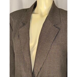 vintage blazer, Alfred Dunner jacket, oversized blazer, 80s 90s blazer, houndstooth check, cottagecore academia, made in USA, brown plaid blazer.