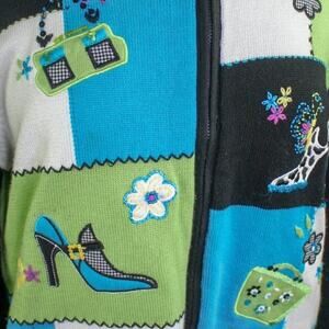 Vintage Alfred Dunner Patchwork Cardigan Sweater Full Zip Shoes Purse