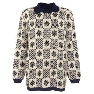 Vintage Alfred Dunner Petite Medium Navy Blue White Geometric Printed Sweater