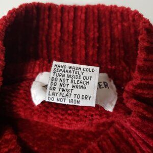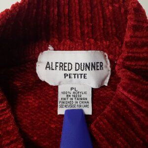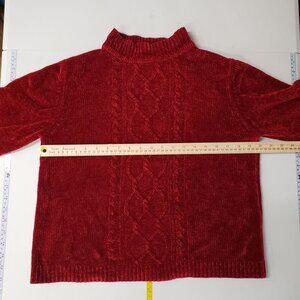 Vintage Alfred Dunner Petite Red Chenille Mock Neck Cable Knit Sweater Size PL