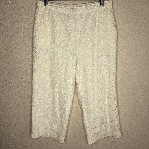 Vintage Alfred Dunner Pull-On Capris Ivory Eyelet Back Elastic Women’s Size 14