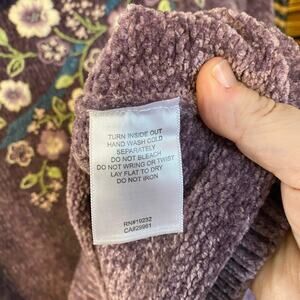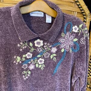 Vintage Alfred Dunner Purple Chenille Sweater Floral Embroidered Collared L