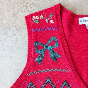 Vintage Alfred Dunner Red Black Scottie Dog Knit Sweater Vest medium