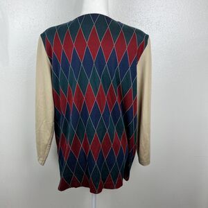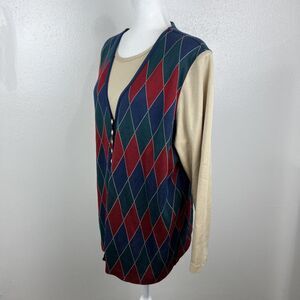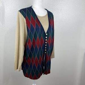 Vintage Alfred Dunner Sweater Women Large Green Argyle Pullover Built In Vest