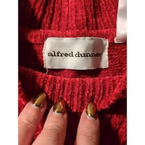 Classic Alfred Dunner holiday sweater in a bright, holiday red. Cozy chevron cable knit design with mock neck styling—ideal for festive gatherings or casual winter layering.