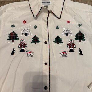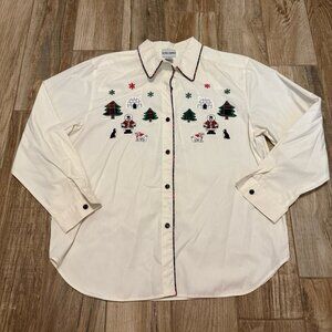 Vintage Alfred Dunner Embroidered Sweet Holiday Themed w/ Paid Trim Button Down Long Sleeve