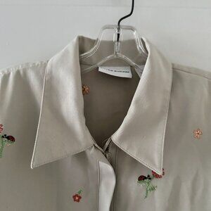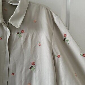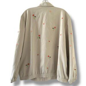 Vintage Alfred Dunner Tan Flower Embroidered Windbreaker Zip Jacket Plus Size 16