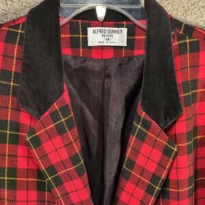 Vintage Alfred Dunner Tartan Blazer Red Wool Velvet Collar 14P Petite Holiday 90s