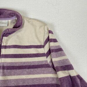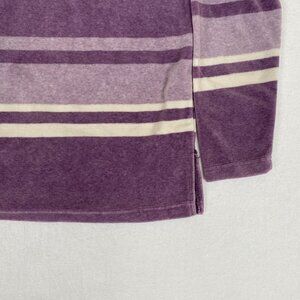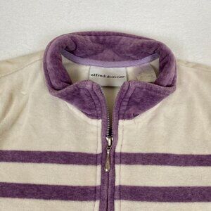 Vintage Alfred Dunner Velour Fleece Purple White Striped 1/4 Zip Pullover Sweater Size Small.