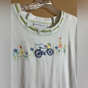 Vintage Alfred Dunner White Short Sleeve Bicycle Scene Shirt Size Small