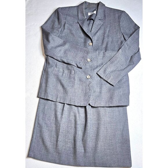 Vintage Alfred Dunner Women Gray Blazer & Skirt Suit Set Size 16 Polyester Blend