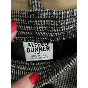 Elevate your wardrobe with this vintage Alfred Dunner women's suit. The two-piece outfit is made of 100% wool, ensuring both warmth and style during the colder seasons. The skirt is a classic fit and features a notch lapel style, while the blazer has a one-button front button style.