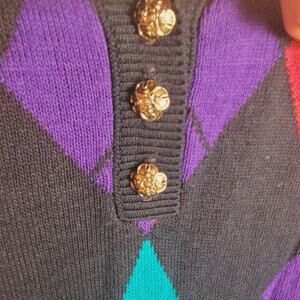 Color: navy blue with purple pink and teal argyle