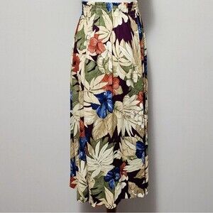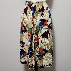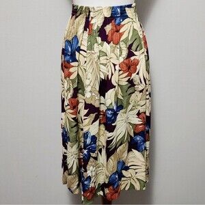 Vintage Alfred Dunner olive purple floral gauze pull-on midi skirt size 10