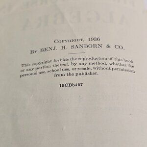 Vintage Algebra Book 1936 School Book Stone Mallory Benj Sanborn Math Hard Cover
