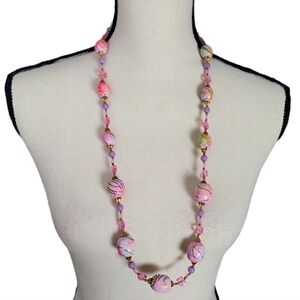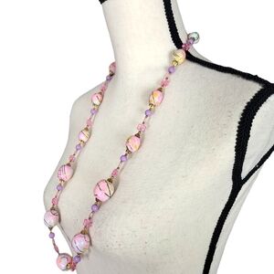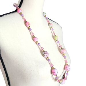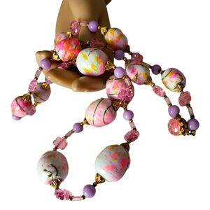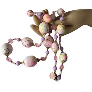 Vintage Alice Caviness Pastel Hand Painted Glass Bead Necklace
