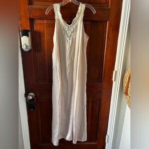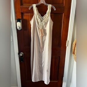 Vintage lingerie, vintage slip dress, Alice Maloof nightgown, ivory satin slip, 70s lingerie, cottagecore slip dress, romantic lace nightgown, bridal lingerie, boudoir gown, silky vintage nightdress, feminine sleepwear, lace trim slip, long satin slip dress, Old Hollywood glam nightgown, vintage bridal slip, romantic nightwear, vintage lingerie size medium.