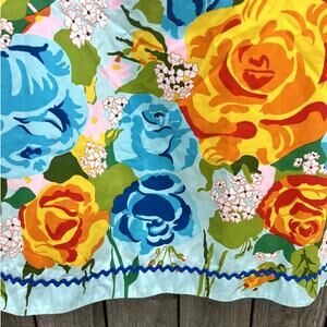 Gorgeous turquoise body with multicolor vibrant floral print, more concentrated on bottom