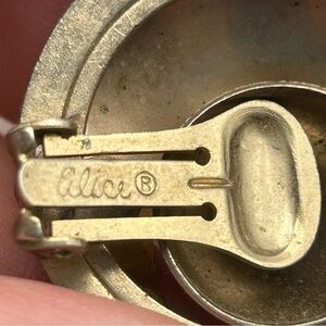 Vintage Alice Silver Tone Atomic Geometric Crescent MoonRound Clip On Earrings Textured