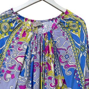 Vintage Alice & Trixie 100% Silk Blouse Peasant Top Size Small Pink Blue Paisley