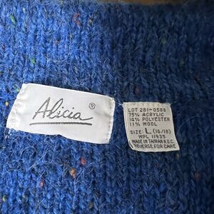 Vintage Alicia Cardigan Womens Large Blue Confetti Wool Button Down Shawl Collar