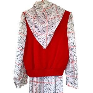 Top: Bodice is Knit, Scarf and Matching Sleeves 50% Polyester 50% Acetate, Back ZipperMeasurements:Chest 40 InchesSleeves 23 Inches Long with Covered Button Length 21 Inches Long
