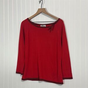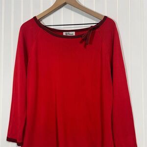 All Points by Reference Point | vintage red top | made in Hong Kong | 90s mod style | bow neckline | boat neck | retro minimalist | long sleeve | XL | rayon nylon blend | cottage academia | stripe trim