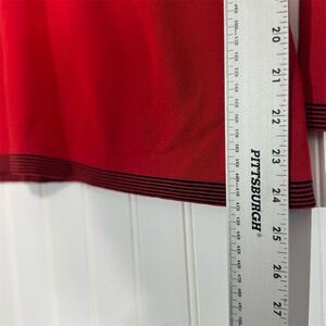 Channel vintage charm with this 90s-era All Points by Reference Point top. Made in Hong Kong, this XL red knit top features a striking boat neckline with striped trim and a sweet bow detail for that perfectly put-together vibe. The hem and sleeves are finished with matching stripe trim for a cohesive retro look. Lightweight and soft with a rayon-nylon blend, it’s ideal for transitional layering or as a standalone statement piece.