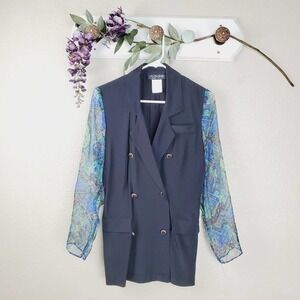 Vintage All That Jazz Boxy Blazer 80s Double Breasted Sheer Sleeves Top