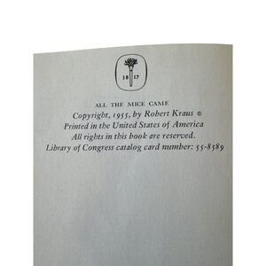 Vintage All The Mice Came Hardcover Childrens Book By Robert Kraus 1955 Harper C