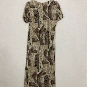 Vintage All that Jazz Brown Gray Abstract Artsy Soft Rayon Midi Dress Medium