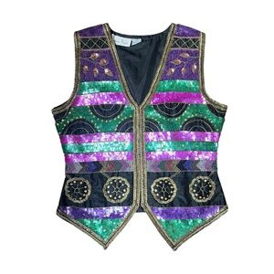 Vintage All-Over Sequins & Beaded Laurence Kazar Vest 100% Silk M