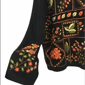Vintage All Points Fall Leaves Embroidered Sweater Size Medium
