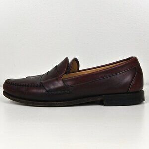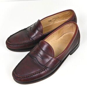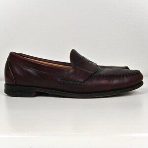 Vintage Allen Edmonds Leather Moc Toe Burgundy Penny Loafer US9.5 UK8.5 Made USA
