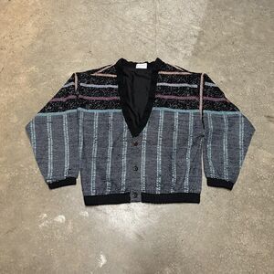 Vintage Allen Wah Cardigan Mens M Sweater Striped 90s Cotton Blend Retro