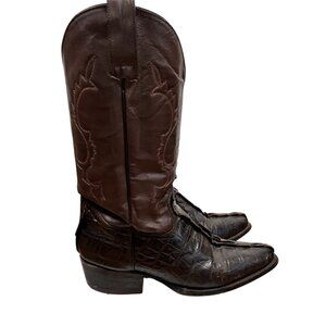 Vintage Alligator Pointed Toe Cowboy Boots Western Size 8.5 Men Brown Leather