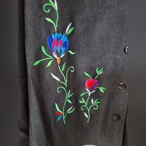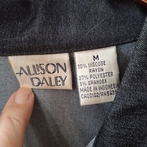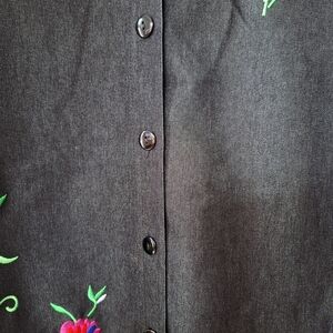 Vintage Allison Daley Top. Black Denim look.Floral Embroidered design.Button Down closure. Long sleeve. Stretch. Collared. Lightweight. Women's Size M Pit to pit flat lay 22" length from collar to hem 30" measurements are approximate
